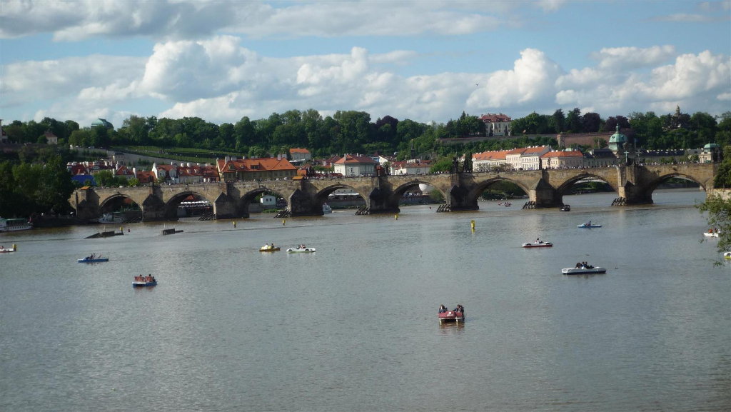 Erste Station war die goldene Stadt Prag. Nach einem Zwischenstopp im schönen Marienbad (incl. original Kolonada-Obladen) wurden wir freundlich in unserer Pension „Větrný mlýn (Windmühle)“ begrüßt, wo auch unsere Moppeds sicher und trocken untergestellt wurden. Am nächsten Tag ging es dann per Bus, Straßenbahn und Metro – ein Hoch auf die Tageskarte – in die City. Besonders gefallen hat uns die große Burganlage, Karlsbrücke und die schöne Altstadt mit ihren sehenswerten Gebäuden – wie z.B. das Cafe Orient, ein typisches Kaffeehaus ganz im kubistischen Stil gehalten.